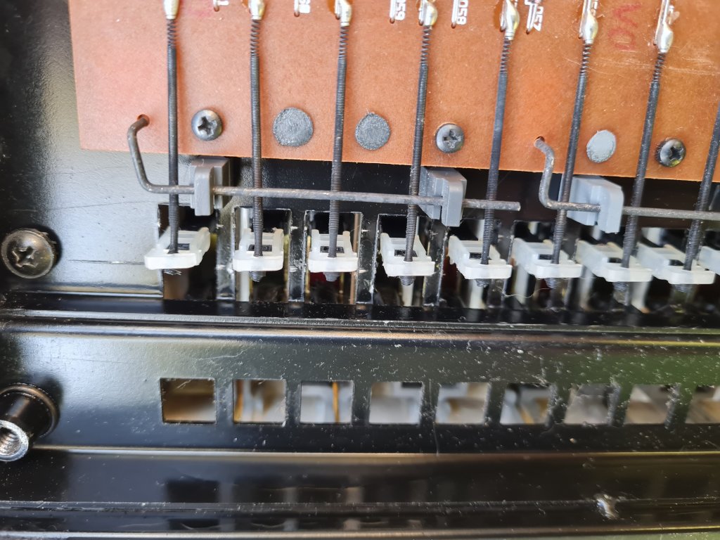CLAVIER FATAR A RESSORTS CARBONES Les pièces en plastique blanches peuvent servir de support aux aimants | CLAVIERS FATAR A CONTACT CARBONE SUR CIRCUIT IMPRIME Les pièces en plastiques noires peuvent servir de support aux aimants | CLAVIERS BOIS IVORY ANGLAIS Les aimants sont placés en queue de touches soit parallèles soit perpendiculaires aux touches | CLAVIERS BOIS IVORY Les aimants sont placés en queue de touches vue générale |